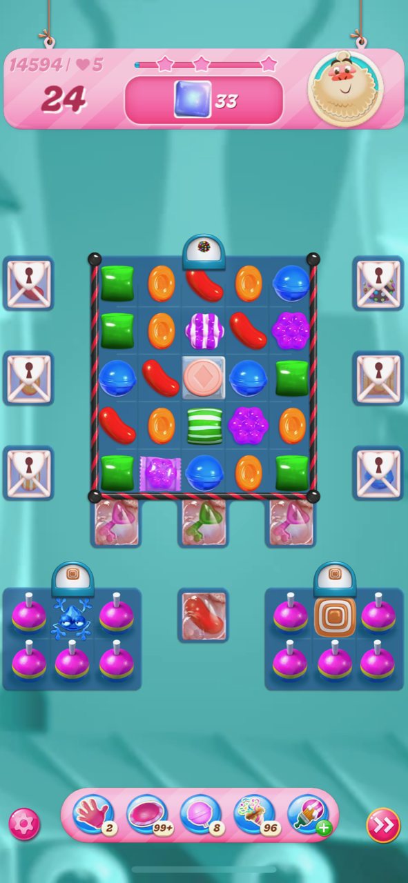 Some of you might have noticed that there has recently been a change to how Candy Necklace boosters are added to the starting board. They can now be placed under marmalade, licorice locks, order locks, and even inside locked chests.