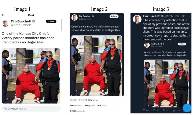 The image, of Loudermill wearing a red sweatsuit, was included in Burchett’s X posts from the day after the shooting and in another one from Feb. 18 — which together amassed millions of views and were reposted tens of thousands of times, Loudermill’s Kansas federal lawsuit from Monday charges.