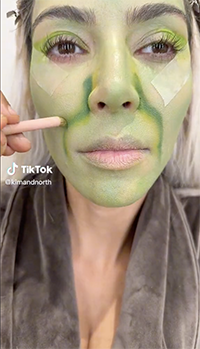 North West put her makeup skills to the test as she transformed her mom, Kim Kardashian, into the Grinch for their latest TikTok video.