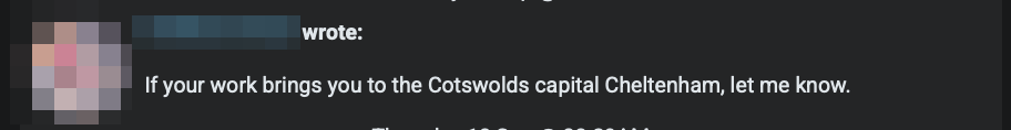 Then, after a flurry of flirty messages and football banter…we agreed on a lunchtime liaison a few days later. Yes, you guessed it – on Thursday.